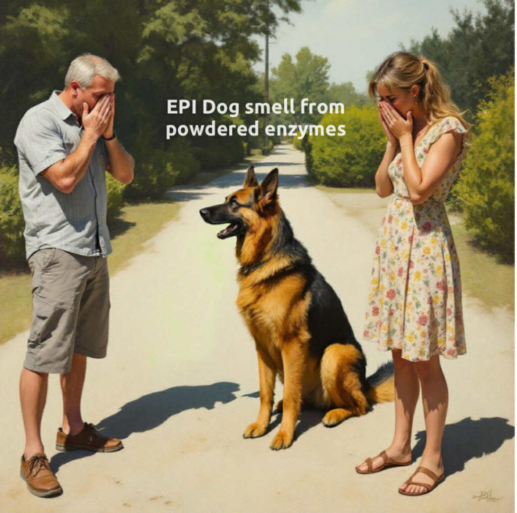 Researchers have also found that EPI dogs have higher levels of putrescine and spermidine in their blood, which are known for their foul odor. Changes in these molecules may explain the smell some EPI dogs have when they start enzyme supplements. *